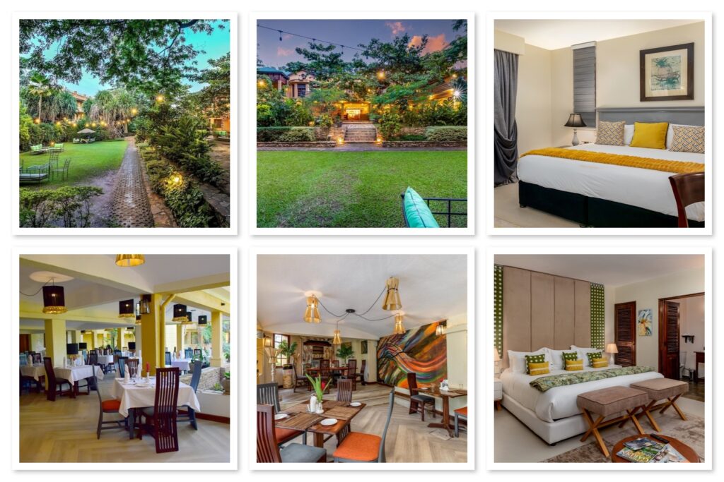 The hotel features a lovely garden replete with flowers, palm trees, and a swimming pool. Each room is uniquely furnished, and the hotel provides an African/colonial ambiance together with all the luxuries required by a traveler. The hotel restaurant provides a fusion of continental and Indian cuisine.